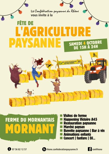 Marché paysan et stands associatifs, visite de la ferme, jeux et animations enfants, crêpes, buvette, bar à vins (bio, nature...), ateliers, vente de notre cuvée appellation incontrôlable...