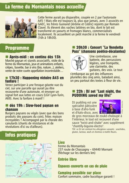 - Lieu : Ferme du Mornantais - 237 route de Chassagny - 69440 Mornant (fléchage sur les derniers km)